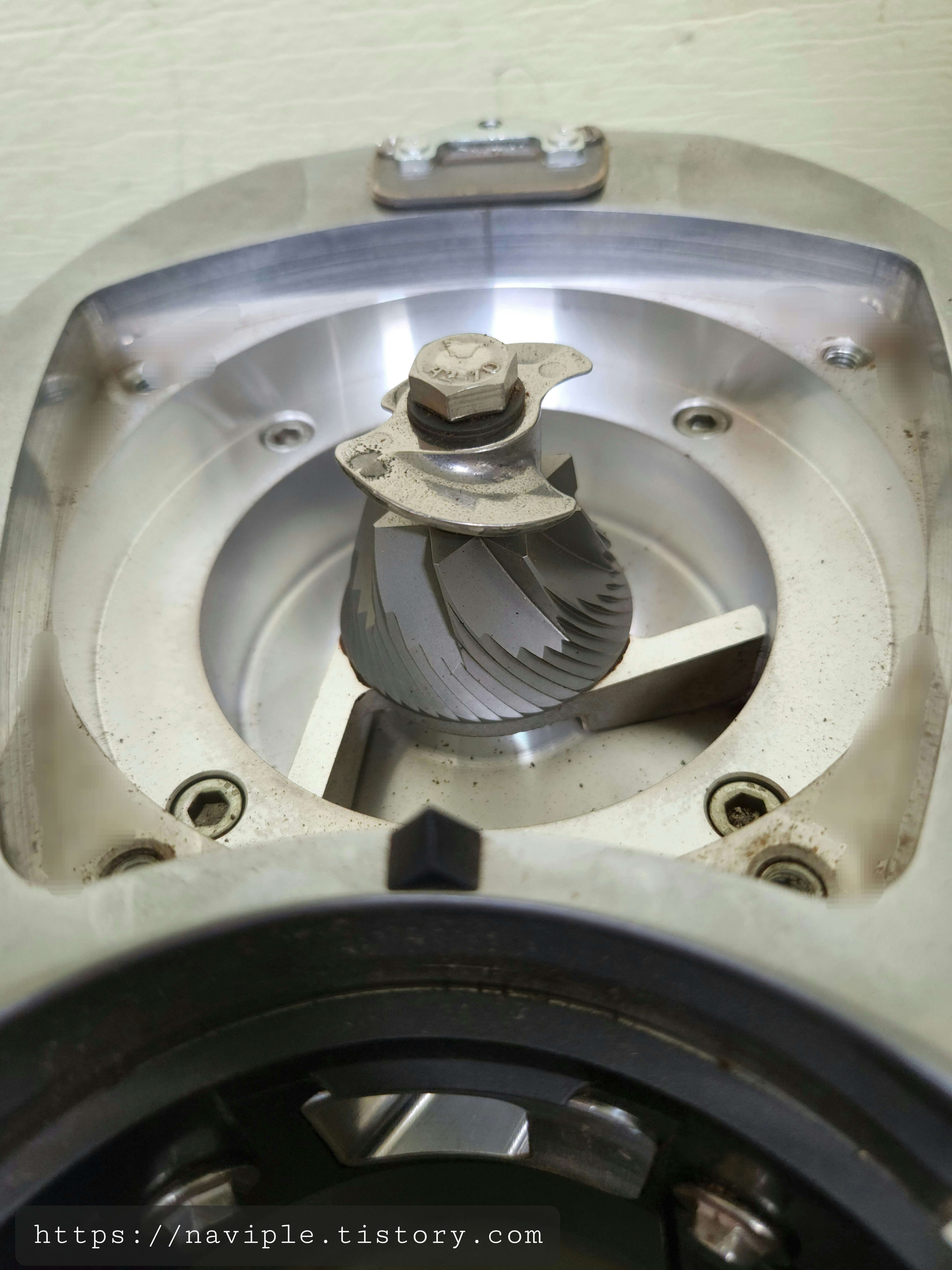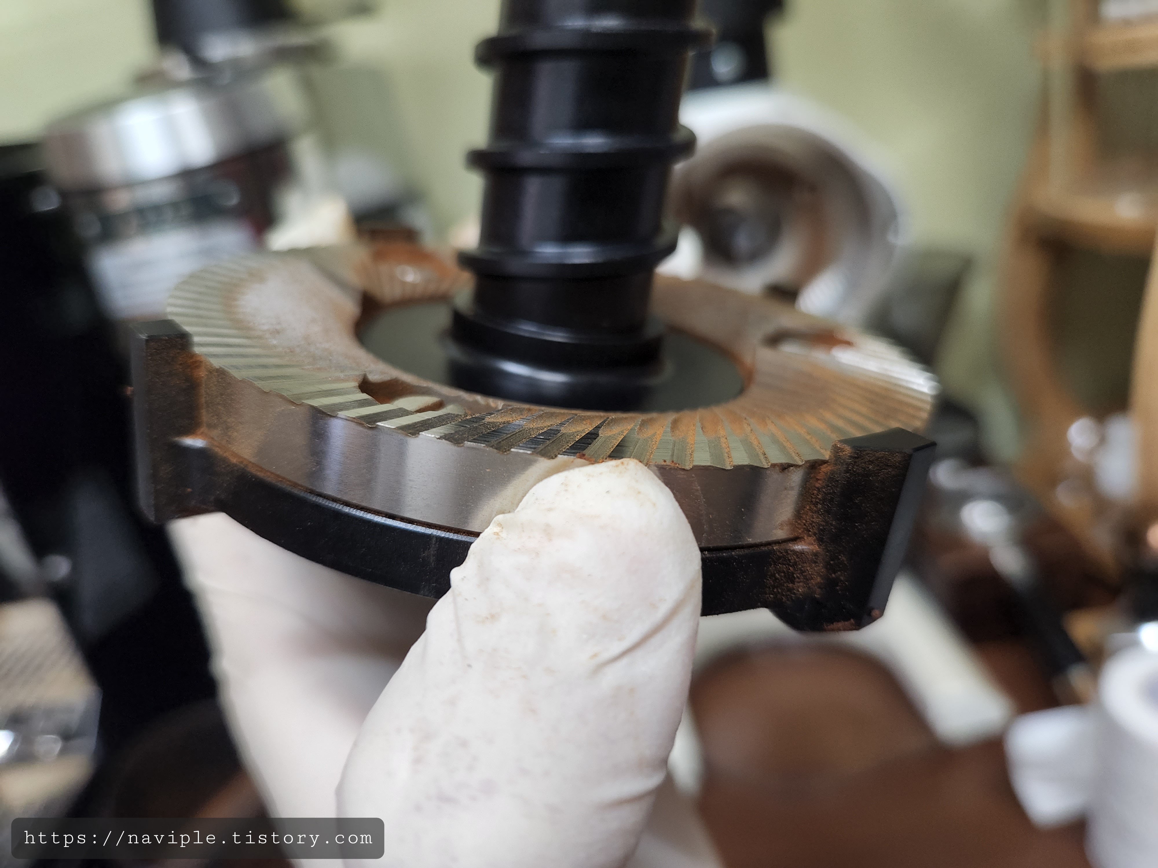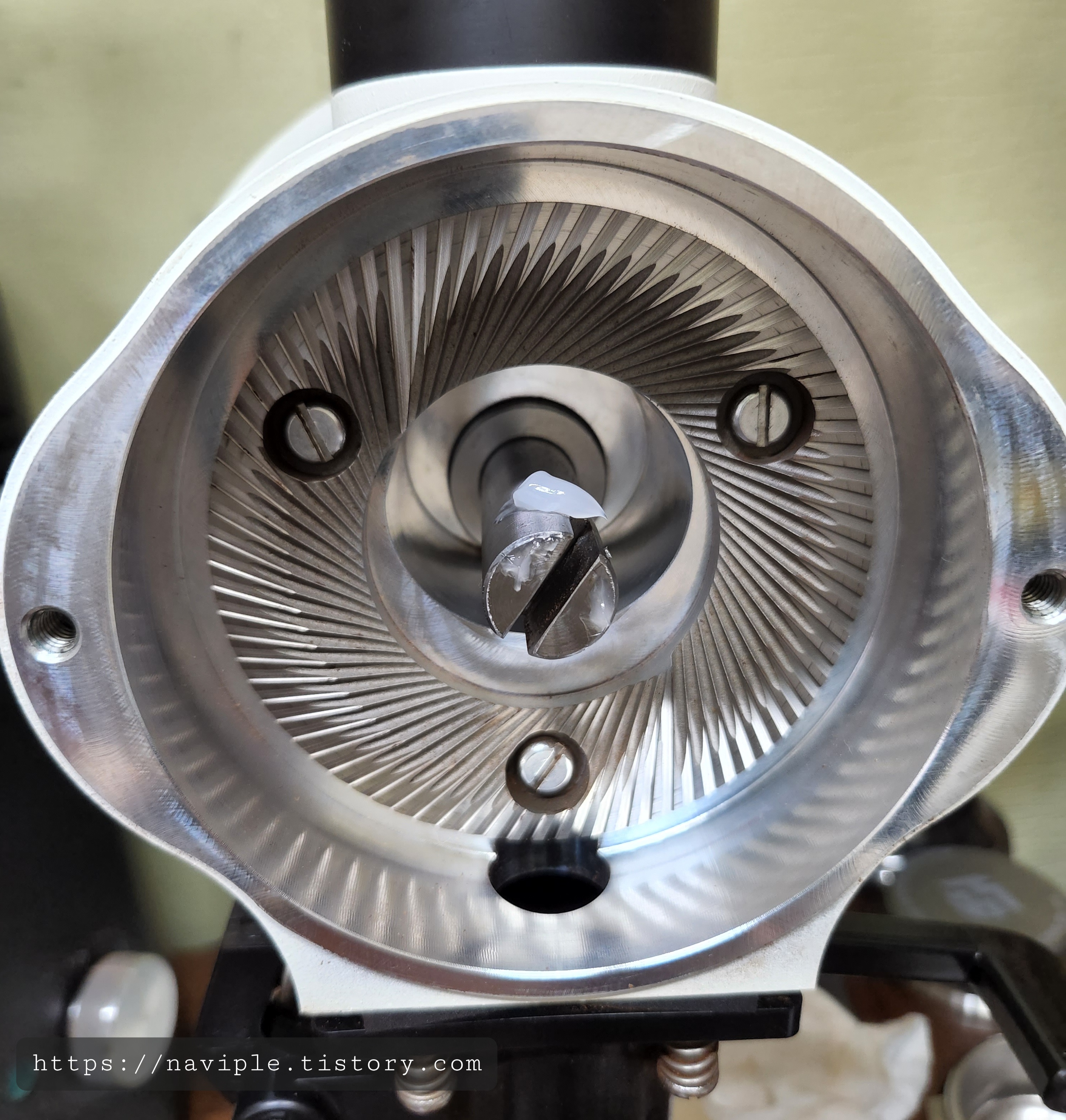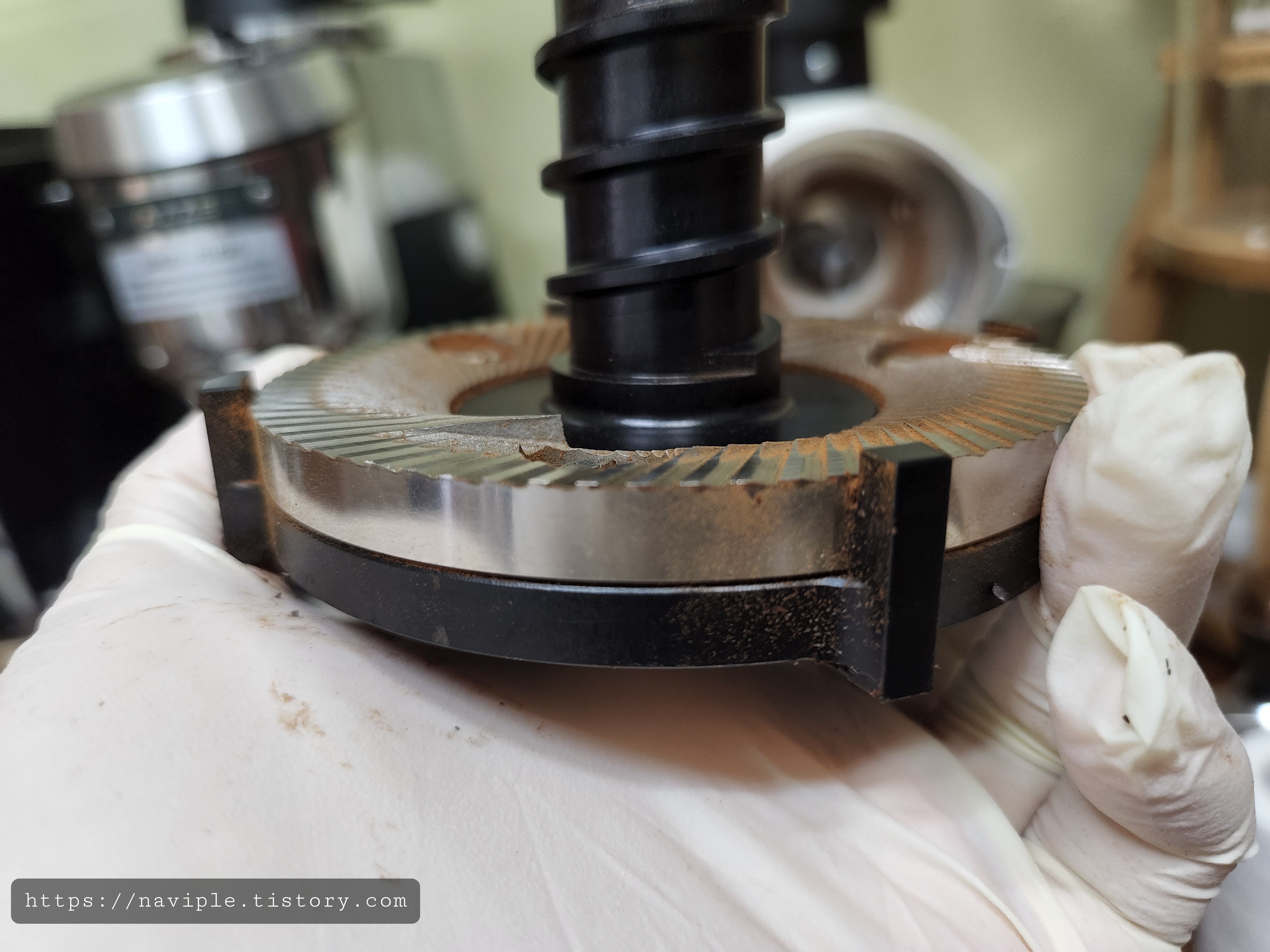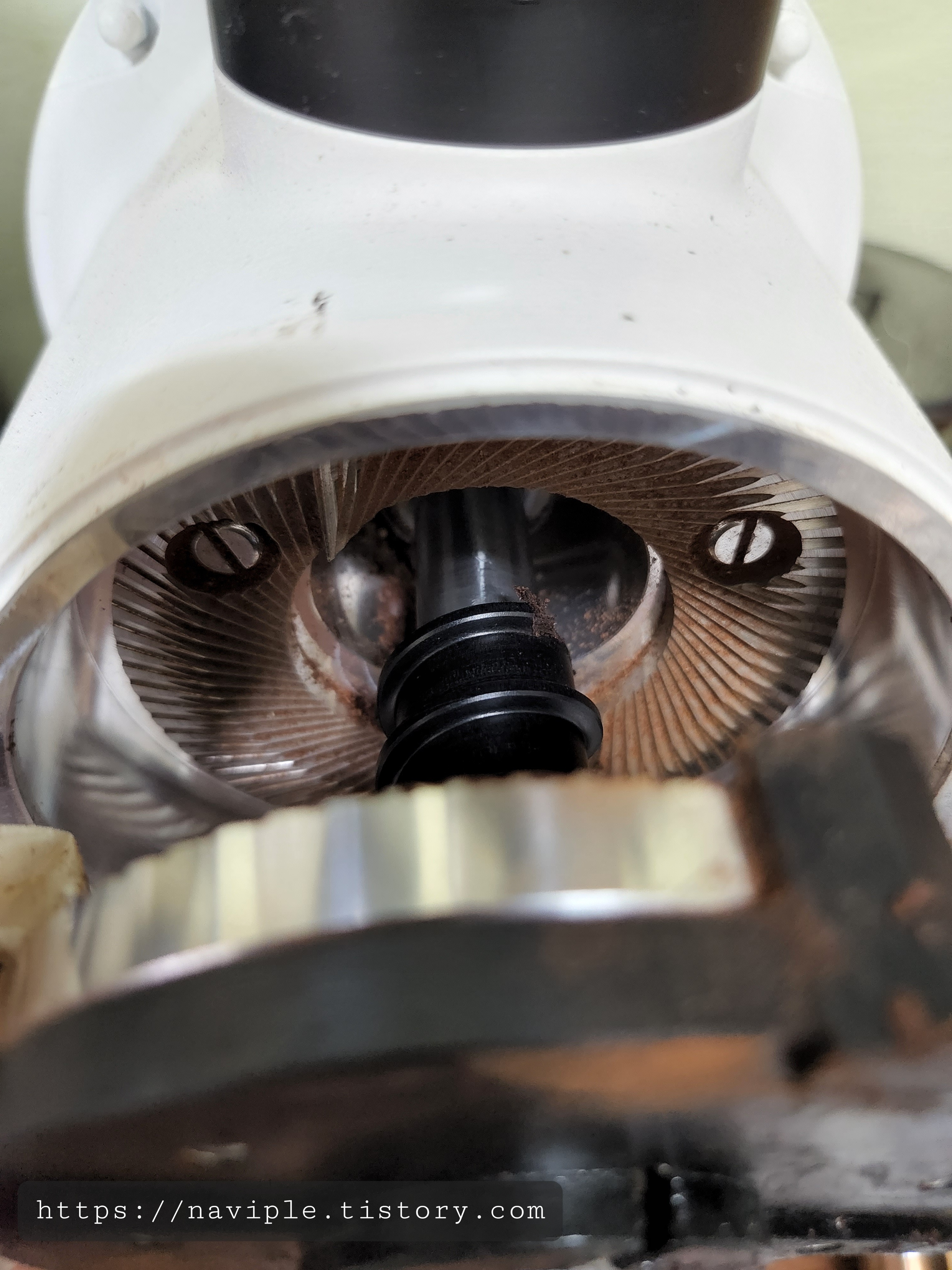 이번에는 영점 조절은 하지 않고 간단하게 원두 찌꺼기 청소 후 식용 윤활제(그리스) 도포만 진행하였습니다