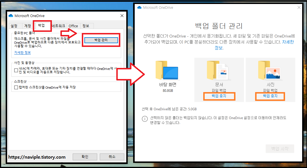 2. 특정 폴더, 바탕화면 백업(동기화) 중지