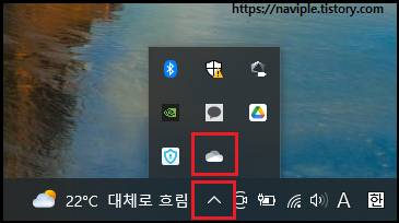 작업표시줄에 구름 모양의 아이콘이 보이실 텐데 아이콘이 안 보이는 경우