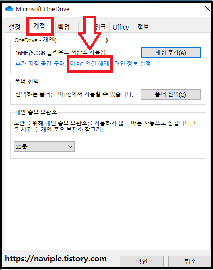 해당 버튼을 클릭하셔서 원드라이브 PC 연결을 해제하실 수 있습니다.