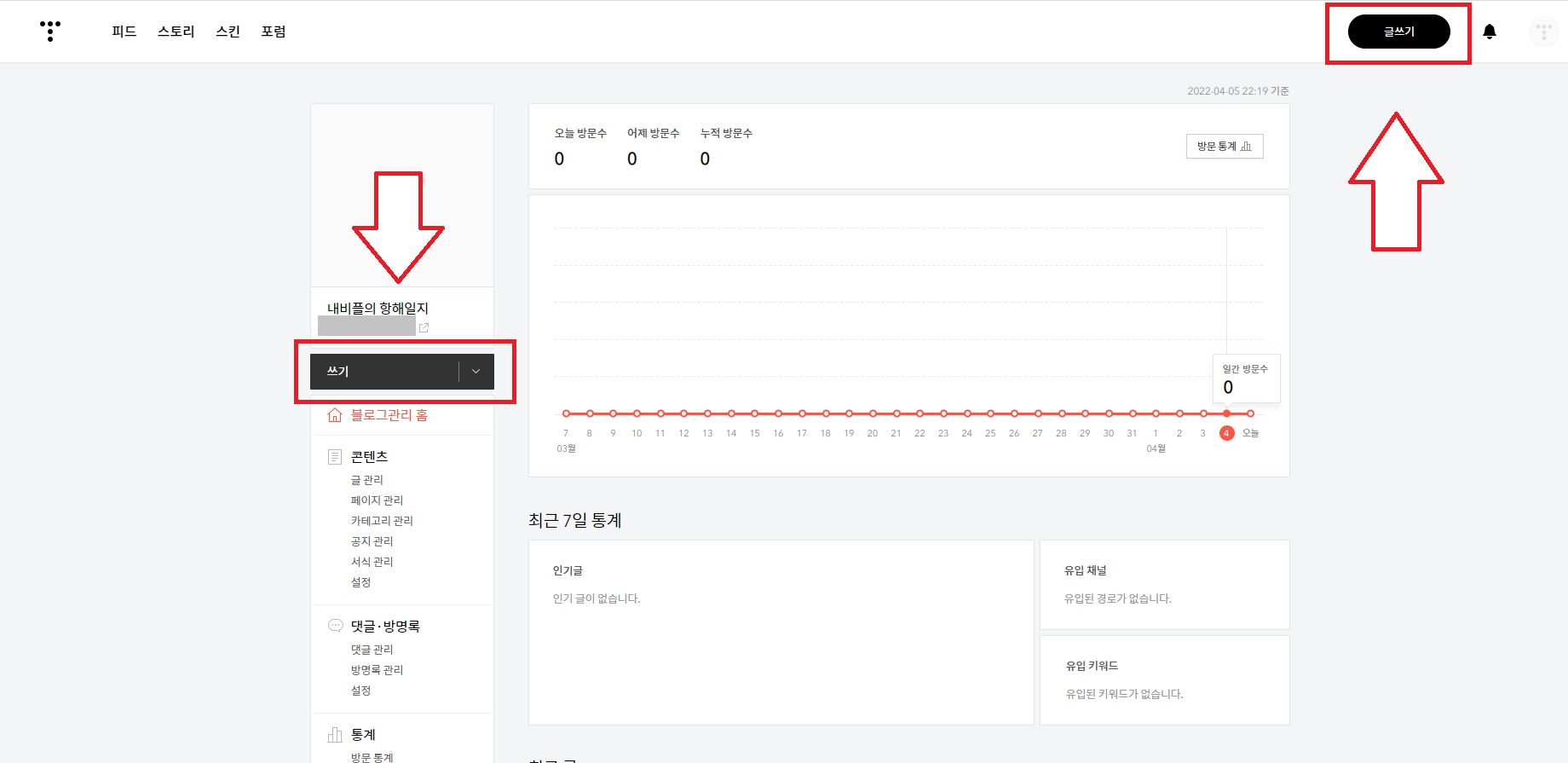 1. 블로그 관리 페이지 접속