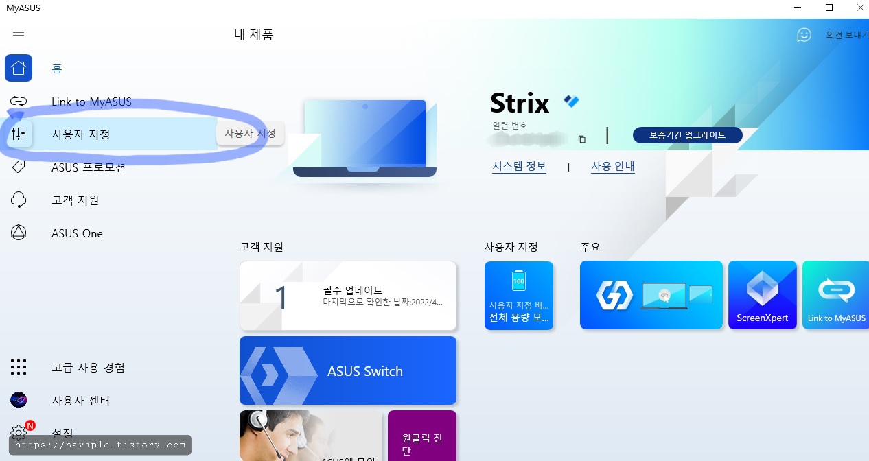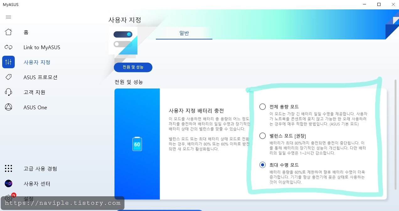 아수스 노트북 배터리 충전 제한 설정법(MY ASUS 배터리 보호)